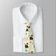 Esta é uma gravata cute com um padrão de gatos atômicos pretos e explosões estelares retrô de meados do século em rosa, laranja e azul turquesa sobre um fundo creme claro