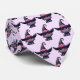 Uma gravata com uma ilustração temática divertida do Dia das Bruxas para amantes de gatos. Um gato preto de olhos grandes vestindo um chapéu de bruxa preta grande com um cinturão roxo rosa ao redor da borda.