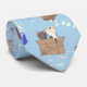 Gatos em xícaras e caixas e gotas de leite em fundo azul