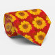 Girassóis cheios de alegria em fundo vermelho grunge. Presente de excelente para mães de jardinagem .Necktie com retrorreflector By Alma Wad .Impresso num dos lados .