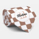 Os quadrados de cheques mocha marrom retro branco, gravata no pescoço do Monograma. Legal presente monograma para homens. Acessório de Ajuste com design de padrão quadrado geométrico verificado retroativamente. Verificador moderno do azulejo Vintage. Personalize com seu nome e inicial personalizados.