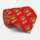 Uma gravata vermelha impressionante, com um leão de desenho animado, o rei das bestas. Ilustração ©2019 Michael C. Paul https://mikepaulart.com