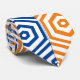 Um laço único e divertido com um padrão hexágono azul, laranja e branco.