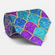 Mostre seu lado criativo em situações profissionais com essa gravata gráfica. Padrão de sereia azul e roxa de sereia feito por Rozine no centro Los Angeles, Califórnia. Acentuado com linhas de ouro metálicas.