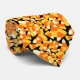 Colheita no pescoço, amenidade de business suite e acessório casual de roupa de declaração de moda divertida com a ilustração Halloween Candy Corn Seamless do design de Padrão Invisível de OFabricSeal em Zazzle.com é preenchida com doces elegantes e deliciosos caramujos em forma de pirâmide com bandas de cores em tons brancos, amarelos e laranja de abóbora. As cores tradicionais do milho doce representam as cores da colheita do outono, o milho no berço, com a extremidade grande da banda amarela parecendo com um kernel de milho. Este doce clássico é conhecido por ser o doce mais contencioso do Halloween.