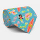 Esta gravata colorida do pescoço apresenta um padrão coberto por imagens do estado do Havaí. As imagens incluem um prato de surfe, um pássaro tucano, flores, uma tartaruga, texto que diz Mahalo e Luau, e, claro, uma garota hula. As imagens são colocadas sobre um fundo azul-ceruliano brilhante. *Este design usa o clip art protegido por direitos autorais pela Encore Software, Inc., que permite o uso de seus licenciadores. Todos os direitos reservados.