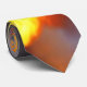 As chamas criam nosso laço impetuoso do pescoço que está incandescendo quente em vermelho, em alaranjado, amarelos e cinzas fumarentos. Vista acima todo o terno ou camisa com nossas gravatas do sapador-bombeiro.
