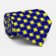 Esta gravata dos homens tem um fundo dos azuis marinhos. O laço tem um teste padrão de quadrados do amarelo e dos azuis marinhos.