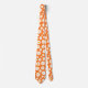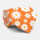 Uma gravata branca moderna, branca, com margaridas brancas planas dispersas, com centros de ouro de girassol sobre fundo laranja arrojado. ideia de presente de excelente.