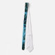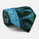 Linda gravata feita de uma foto de água cai sobre folhas. Azul e aqua cores em um fundo escuro.