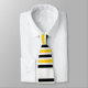 Silhueta preta do jogador de polo de água e gravata do pescoço de listras exibindo um ícone de pictograma minimalista de uma silhueta preta de um jogador de água segurando sua bola em frente ao gol e listras amarelas e pretas.