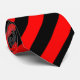 Listras diagonais vermelhas e pretas. Ângulo para baixo do ombro esquerdo.