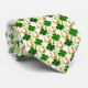 A sorte da gravata irlandesa com padrão para a Rua. Dia de Patrick comemorando. Trevos verdes, de quatro folhas e padrões de ferraduras douradas cobrir um fundo branco nesta gravata irlandesa unisex. Este design de sorte é perfeito para comemorar feriados no escritório e eventos especiais que acontecem em março.