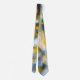 "Sinta a gravata festiva do pescoço" com uma abstrato foto de Na moda amarelo e azul e um presente prático para um amigo ou membro da família.