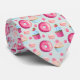 Uma gravata deliciosa com um design de padrão delicioso. Rosquinhas cor-de-rosa com aspersores. Cupcakes de abeberamento da boca, cor-de-rosa e azul, com rosetas e morangos em cima. Algumas macaronas pastel cor-de-rosa e pequenos botões de doces cor-de-rosa também decoram este padrão de cheios doces.