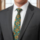 Gravata Mandelbroto Fractal Azul Turquesa Dourado