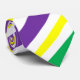 Esta gravata do pescoço tem listras amarelas, verdes e roxas. É excelente para Mardi Gras.