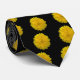 Uma gravata preta coberta de flores amareladas e coloridas.