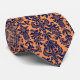 Gravata Marinho Azul e Laranja - Damascos Florais Padrão 2