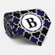 Um na moda e uma gravata personalizável do pescoço, com um padrão quatrefoil azul e preto marinho e um círculo monograma na parte inferior onde você pode digitar o texto inicial ou qualquer outro. Adequado para qualquer ocasião formal. Faz um presente único para os na moda!