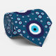 Na moda gravata impressa com os símbolos tradicionais dos olhos mau em um fundo azul marinho escuro