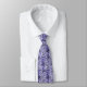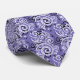 Gravata mostrada em uma cor roxa com redemoinhos e floreios pretos e brancos por toda parte.
