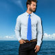 Este gravata gráfica de cavalo apresenta um micropadrão de duas tonalidades em duas tonalidades de azul. Impresso em ambos os lados, é um acessório na moda para amantes do mar, adicionando um toque marinho sutil a roupas formais ou ocasionais.