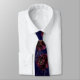 An elegant deep navy blue and bordeaux burgundy red wedding neck tie featuring watercolor painted burgundy and navy florals only, against a deep navy watercolor wash background, with gold floral elements and sprays.