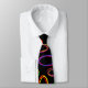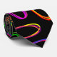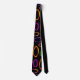 Essa gravata tem uma design geométrica de grupos de três ovais em cores neonatais espalhados em um campo de preto.