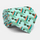 Esta gravata apresenta um padrão inspirado pelo verão na praia. Apresenta óculos de sol retrorreflectores e pranchas de surfe em legal cores de cor verde e verde com laranja.