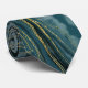 Gravata Ondas Abstratas de Aquarela Azul Teal Dourado