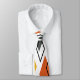 Esta gravata tem um design moderno do século médio de diamantes espalhados em laranja, ouro, turquesa, cinzas e contornos em um campo branco