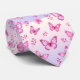 Gravata Padrão de borboletas e flores cor-de-rosa
