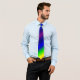 Gravata com padrão de cores arco-íris azul, amarelo, verde e roxo.