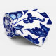 Gravata Padrão floral azul-marinho chinês em branco