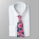 Uma gravata floral colorida com um fundo azul marinho e um padrão de flores cor-de-rosa. Perfeita para um casamento ou outra ocasião especial.
