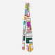 Esta gravata tem uma design moderna do século médio de retângulos com um buraco branco em cores retrorreflectoras.