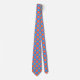 Neck-tie with a seamless modern geometric flower pattern in the colors of the pansexuality pride flag; a pink, yellow, and blue pan pride design on a blue background