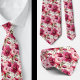 Uma gravata vibrante com um design floral em aquarela de flores rosa claro brilhante e rosas magenta. As flores são delicadamente pintadas com pinceladas suaves e fluidas, misturando-se perfeitamente umas às outras. Os tons rosa claro são suaves e elegantes, enquanto as rosas magenta trazem um contraste ousado e marcante, criando um equilíbrio lindo. A técnica de aquarela adiciona um senso de fluidez e leveza ao design, dando à gravata um toque refinado e artístico. O fundo é uma lavagem suave e sutil de tons complementares, permitindo que as flores se destaquem como o ponto focal da gravata. Perfeita para adicionar um toque de elegância floral e sofisticação a qualquer roupa. Ótima para gravatas de padrinhos de casamento com tema rosa claro e magenta.