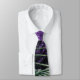 Um pavão maravilhoso que ainda é fotografia de vida. O fundo roxo com a pena de pavão sobre uma pena de avestruz preta é um design colorida e vibrante para esta gravata no pescoço.