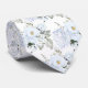 Gravata Peônias Rosas Hidrangeas em Aquarela Azul Poeira