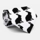 Esta gravata do pescoço é branca com uma imagem repetida do perfil lateral de um coelho sentado na silhueta negra.