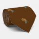 Pescar mosca gravata no pescoço em castanho de chocolate. O padrão de moscas pequeno, muito espalhado, é feito de ilustrações antigas. As cores são penas cor de laranja com azul e algumas amarelas. Adequado para vestir ao escritório, um pescador pode mostrar seu amor pelo esporte.