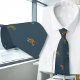 A pesca voa gravata do pescoço em cor azul-cinza escura. O padrão de moscas pequeno, muito espalhado, é feito de ilustrações antigas. As cores são penas cor de laranja com azul e algumas amarelas. Adequado para vestir ao escritório, um pescador pode mostrar seu amor pelo esporte.