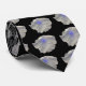 Essa bonito gravata apresenta uma fotografia de uma flor de petúnia que foi manipulada para fazer o centro da flor brilhar azul brilhante. As pétalas exteriores são brancas e as veias que saem do centro da flor também brilham a azul. As flores estão em fundo preto para se destacarem.