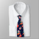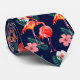 Gravata Pink Orange Flamingo Patterno no Marinho Azul