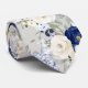 PixDezines floral watercolor neck tie, navy blue foliage, blue hydrangeas, ice blue roses, rustic creamy white roses. The design is an editable tiled image. Most of our designs come with DIY background color.