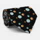 Gravata linda com pontos elegantes de bolinhas em azul claro e cores douradas em fundo preto.