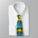 Por do sol bonito da praia atrás das prancha e das palmeiras, quadro com as flores do bambu e do hibiscus. Fundo do azul de oceano com as tartarugas de mar de Honu e máscaras havaianas cor-de-rosa de Tiki.
