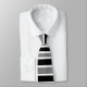 Esta gravata do pescoço tem faixas verticais pretas e cinzas.